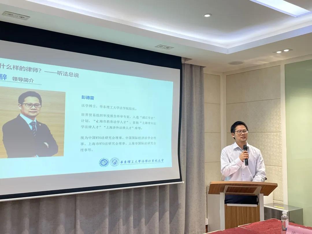 法学院院长彭德雷在分享会开始前致辞,他指出:法学院目前在积极推进学院与外部的合作,已经建立了二十余家产学研基地、聘请了数十位实务专家担任兼职教授和校外导师,努力为学生们提供多元更具有实践意义的锻炼机会。希望通过学院和校友的共同努力,让华理法学院有更好更快的发展。