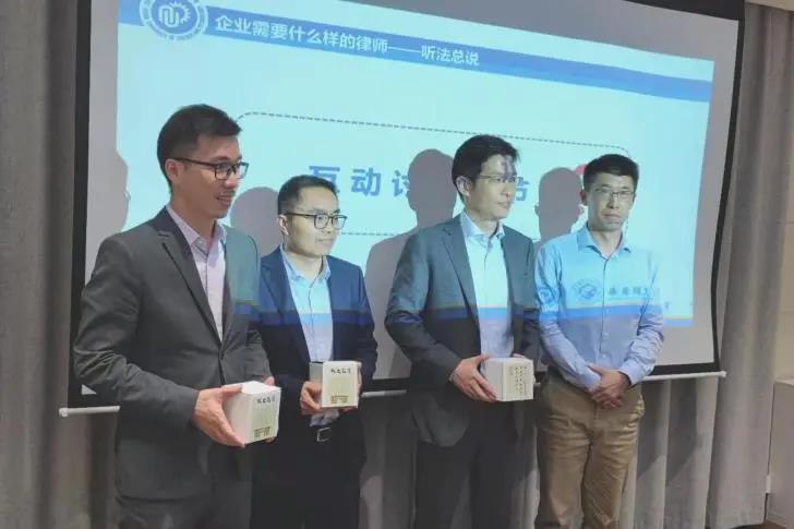 嘉宾们分享过后,线上、线下校友提出了很多问题,互动氛围热烈。三位嘉宾知无不言、言无不尽,慷慨为校友们分享自己的心得体会。最后,华东理工大学法学院副院长、法律行业校友会副理事长周登谅为嘉宾送上了校友纪念品,分享会圆满结束。