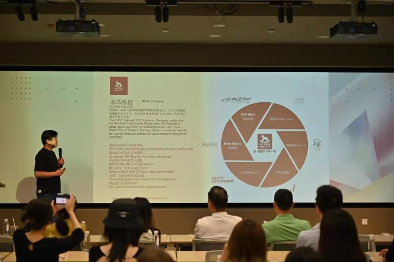 丁伟就《设计的协同与进化》主题进行了阐述。他从快消品角度入手,阐述了设计系统化思维的重要性,并分享了优秀的设计案例。马骏则以《美妆广告的‘破圈’行动》为主题,从讨论量和及成本、从前和现在的新型多媒体交互方式等方面进行了比较,讲述了优秀的广告作品的设计思路。