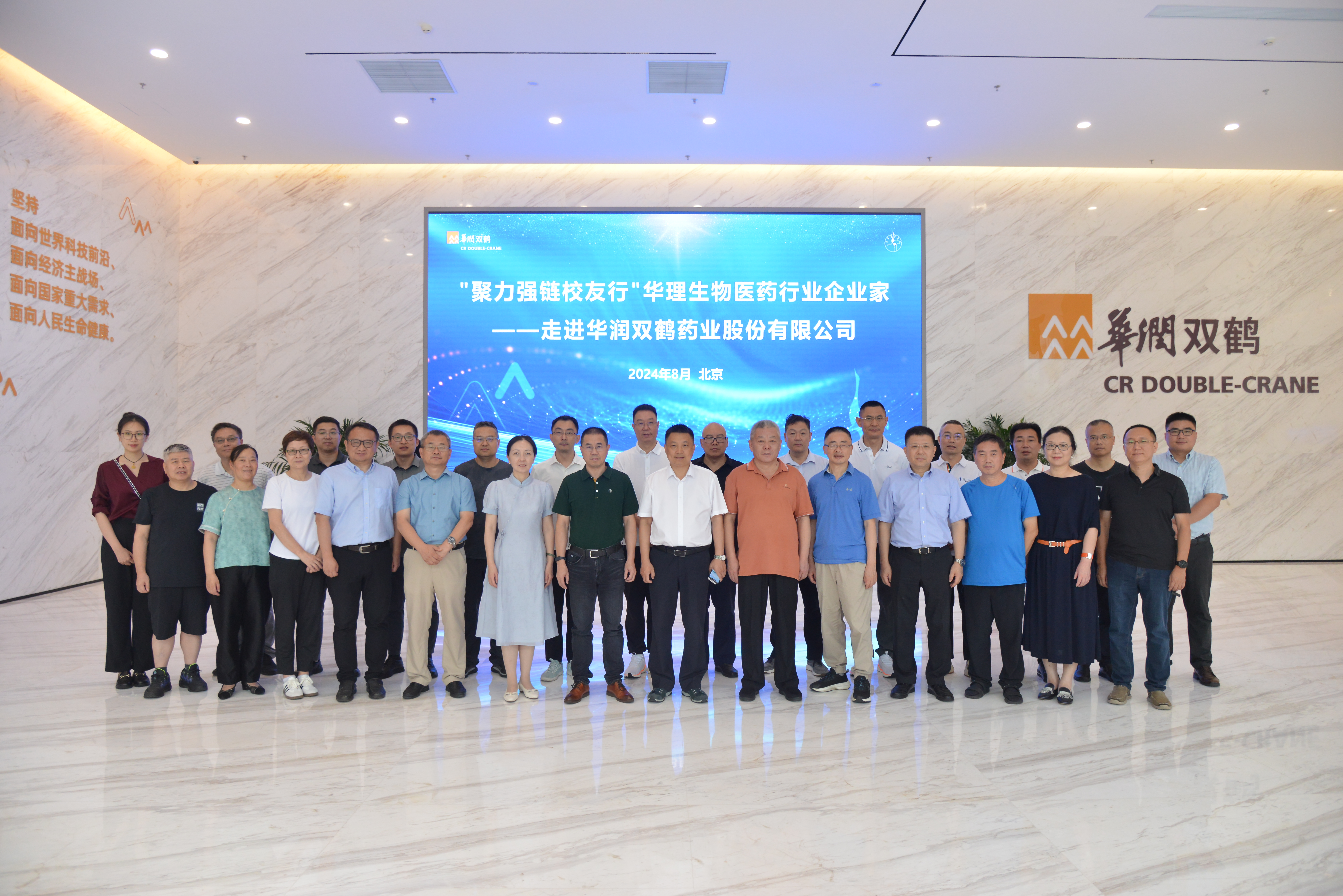 8月6日—8日,由华东理工大学生物医药行业校友会主办的“聚力强链校友企业行”第八站走进京津冀药企活动顺利开展。我校副校长李剑带队走访华润双鹤药业股份有限公司,看望校友、学习交流、对接合作,校友与发展联络处处长王芝眉,华理生物医药行业校友会理事长、启东东岳药业有限公司董事长蔡水洪以及近30名校友企业家参加走访。校友会一行还走访了中国科学院天津工业生物技术研究所、天津药物研究院、天津力生制药股份有限公司、华北制药股份有限公司,贯通生物医药行业产业链上下游。