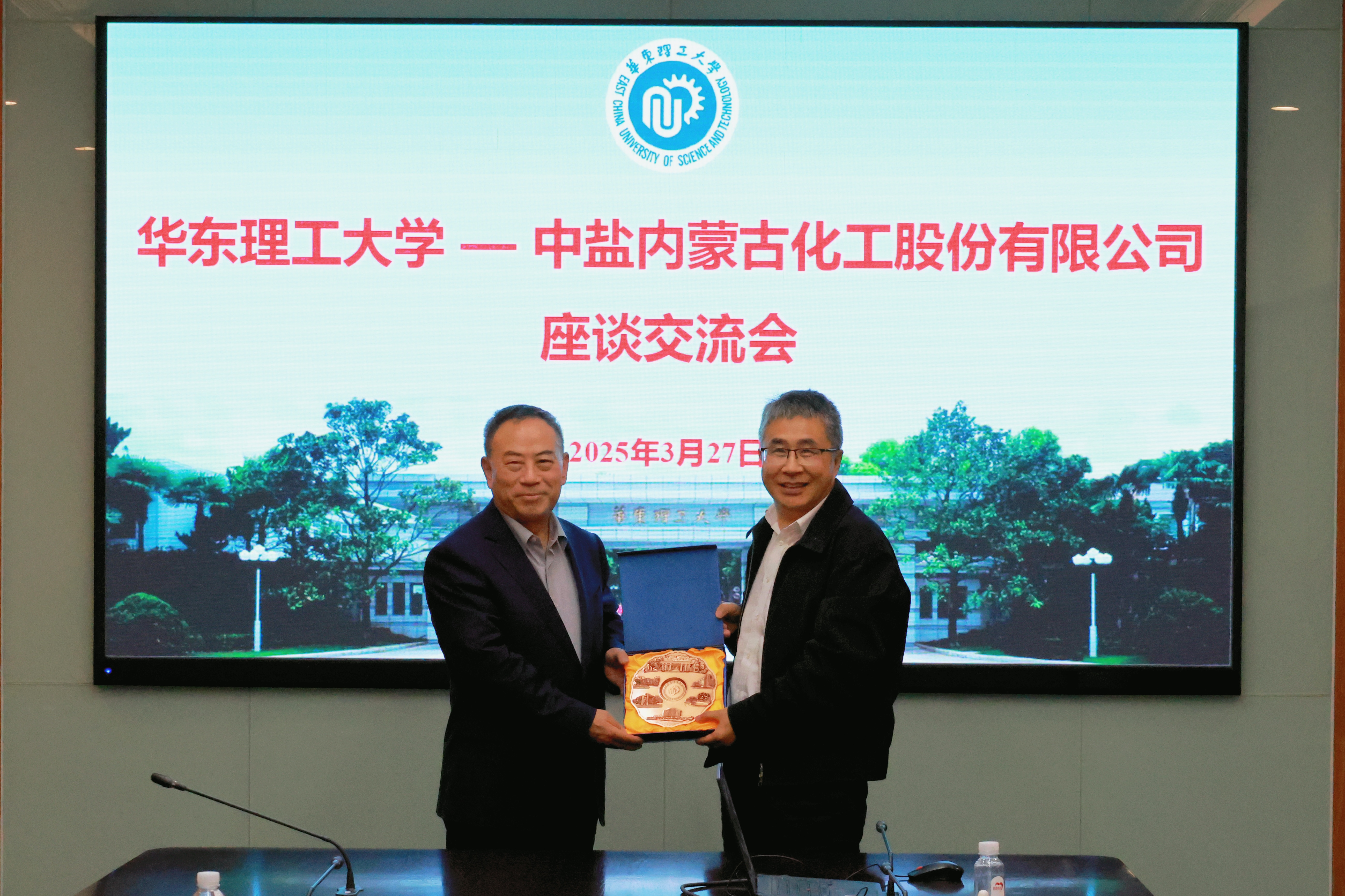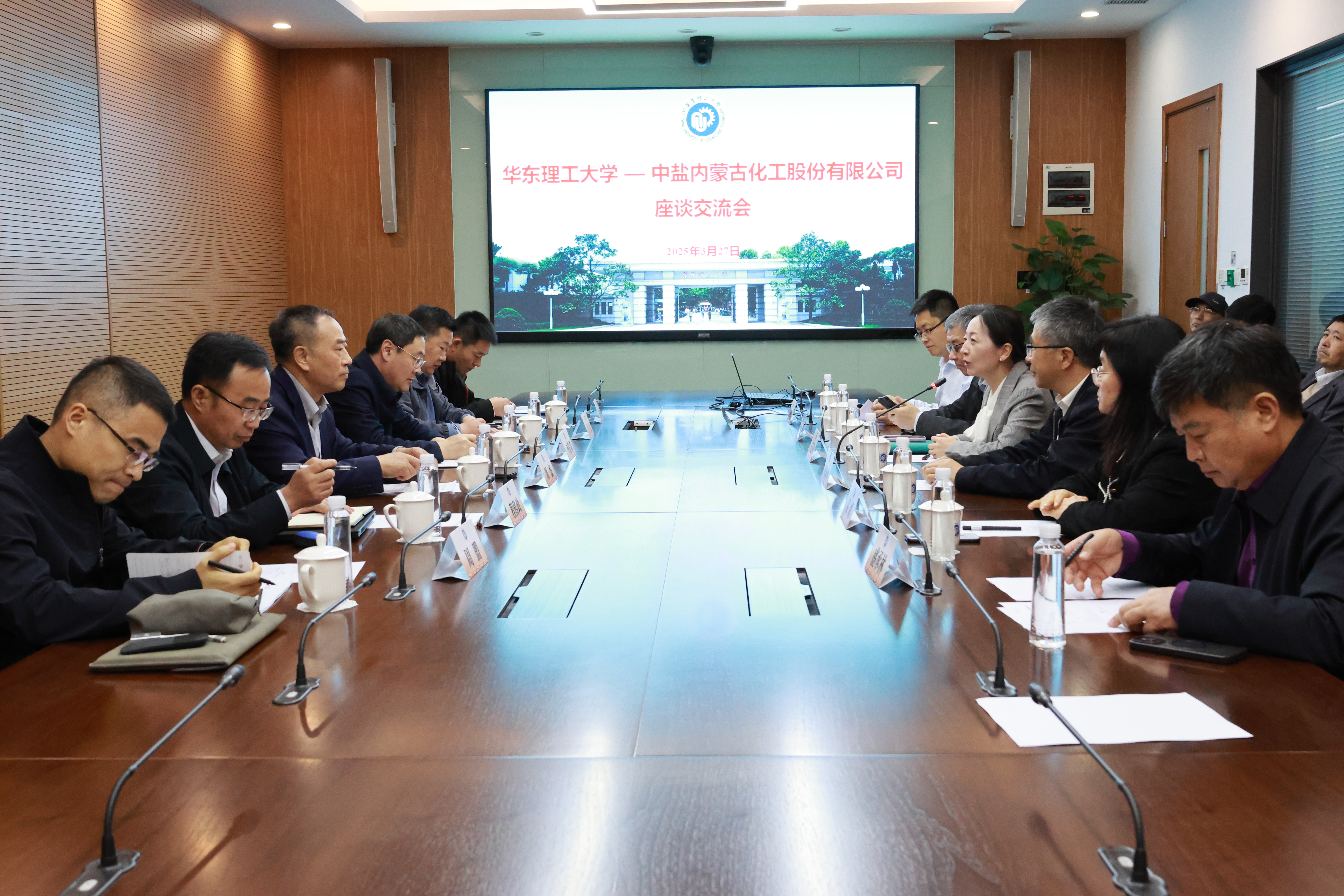 3月27日下午,中盐内蒙古化工股份有限公司(以下简称“中盐化工”)党委书记、董事长周杰(华理1983-1987 应用化学专业校友)带队来校就深化中盐集团与学校合作、协同创新开展座谈交流,我校党委常委、副校长阎海峰出席座谈会。