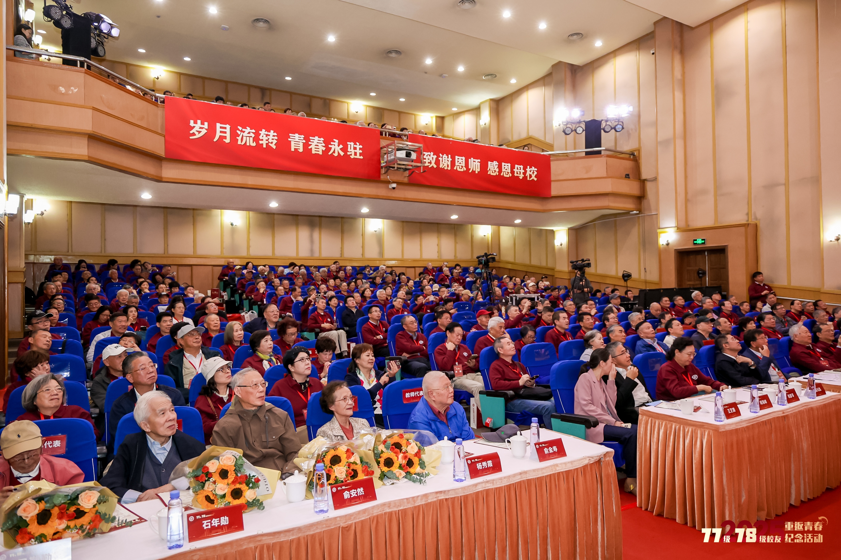 10月30日,77级、78级校友“重返青春”纪念活动在徐汇校区隆重举行。500余名来自全球的校友跨越山海归来,与当年的老师和同学齐聚一堂,共忆青春岁月,共叙绵长情谊。我校抗771班校友、中国科学院院士李永舫,有782班校友、华东师范大学校长、中国工程院院士钱旭红等校友代表与会并发言,校党委书记蒋传海出席大会并讲话,副书记沈海涛、副校长阎海峰出席,大会由沈海涛主持。